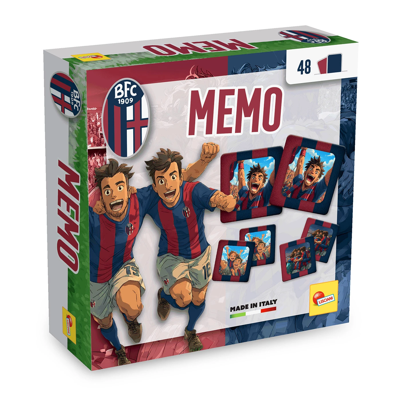 Discover the illustrated cards featuring the colors and characters of Bologna FC, and match the identical pairs to win the game. A fun and engaging way to boost concentration and observation skills, whether playing solo or with friends.