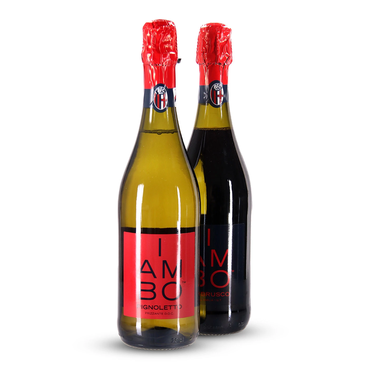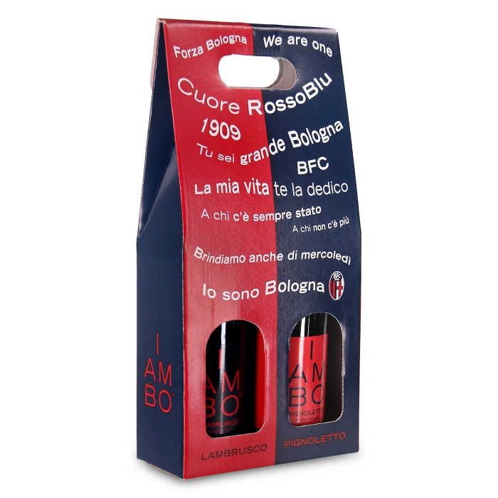 Gift box containing one bottle of Lambrusco 750 ml and one bottle of Pignoletto 750 ml.