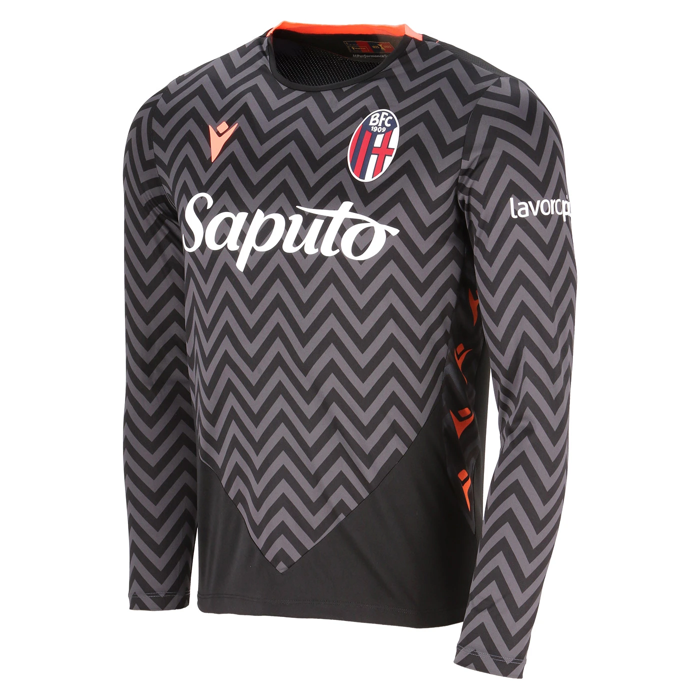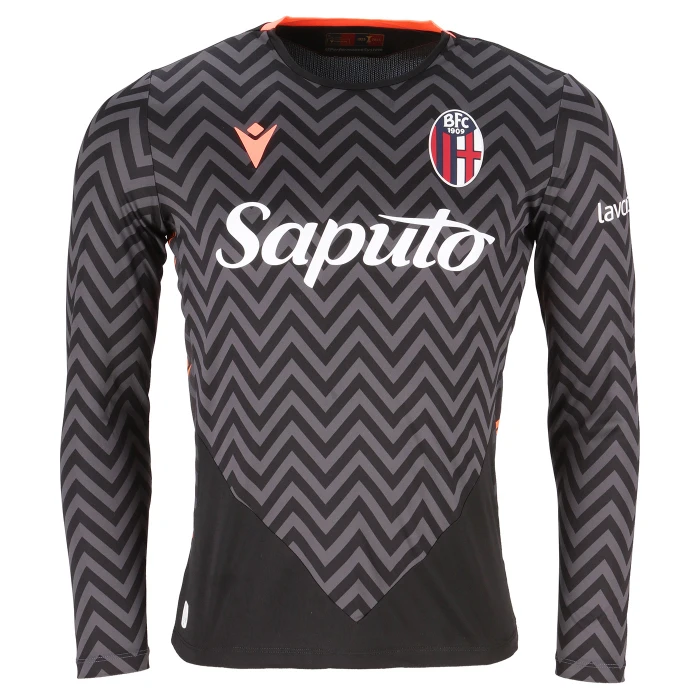 100% polyester. Gameday goalkeeper jersey with Bologna FC and Macron logos.