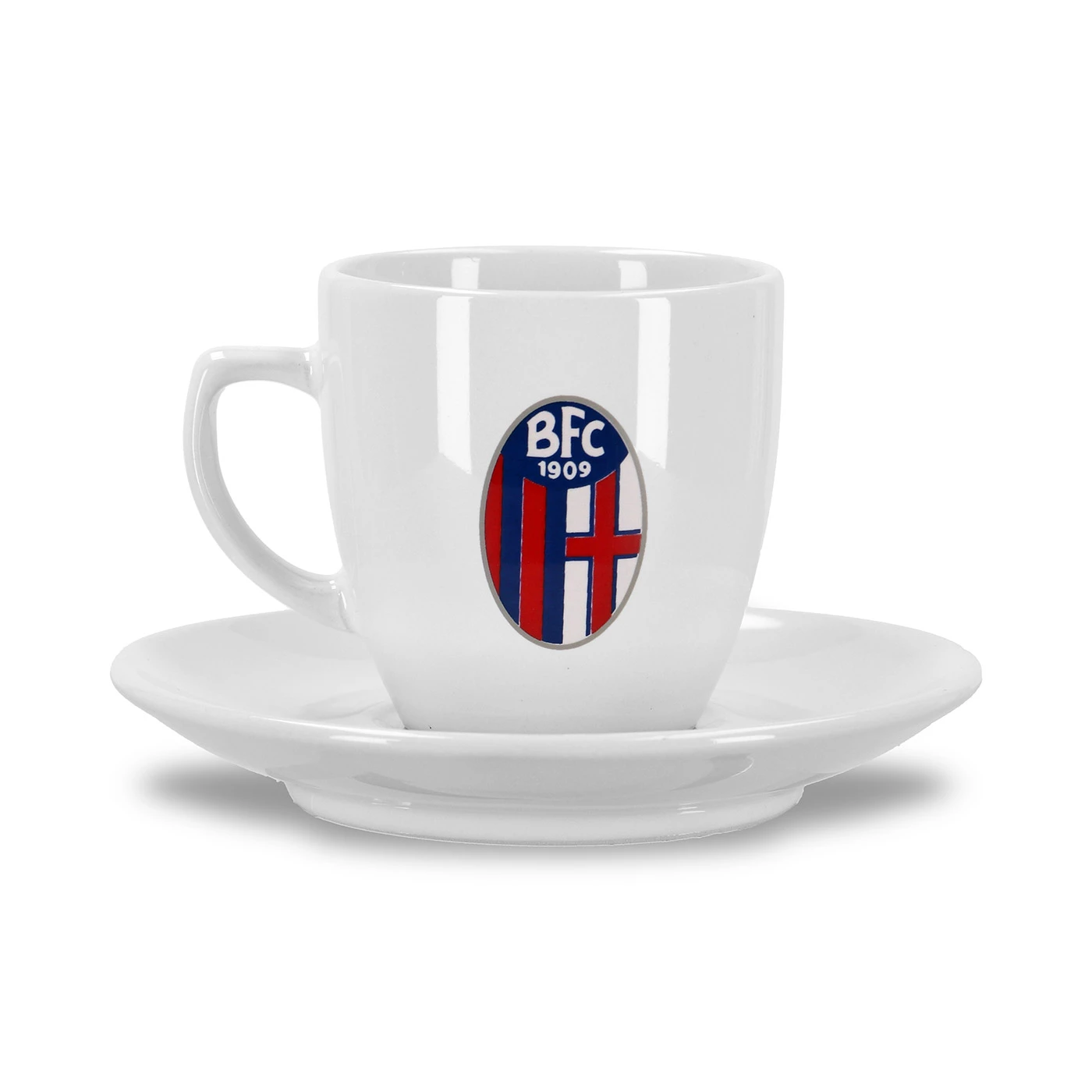 Tazzina da caffè e piattino coordinato realizzati in ceramica con logo Bologna
