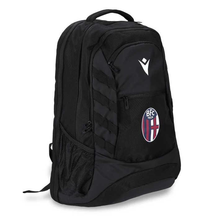 100% poliestere. Zaino sport dimensioni: 34 x 52 x 20 cm. Capacità 35,3 litri. Loghi Bologna FC e Macron.