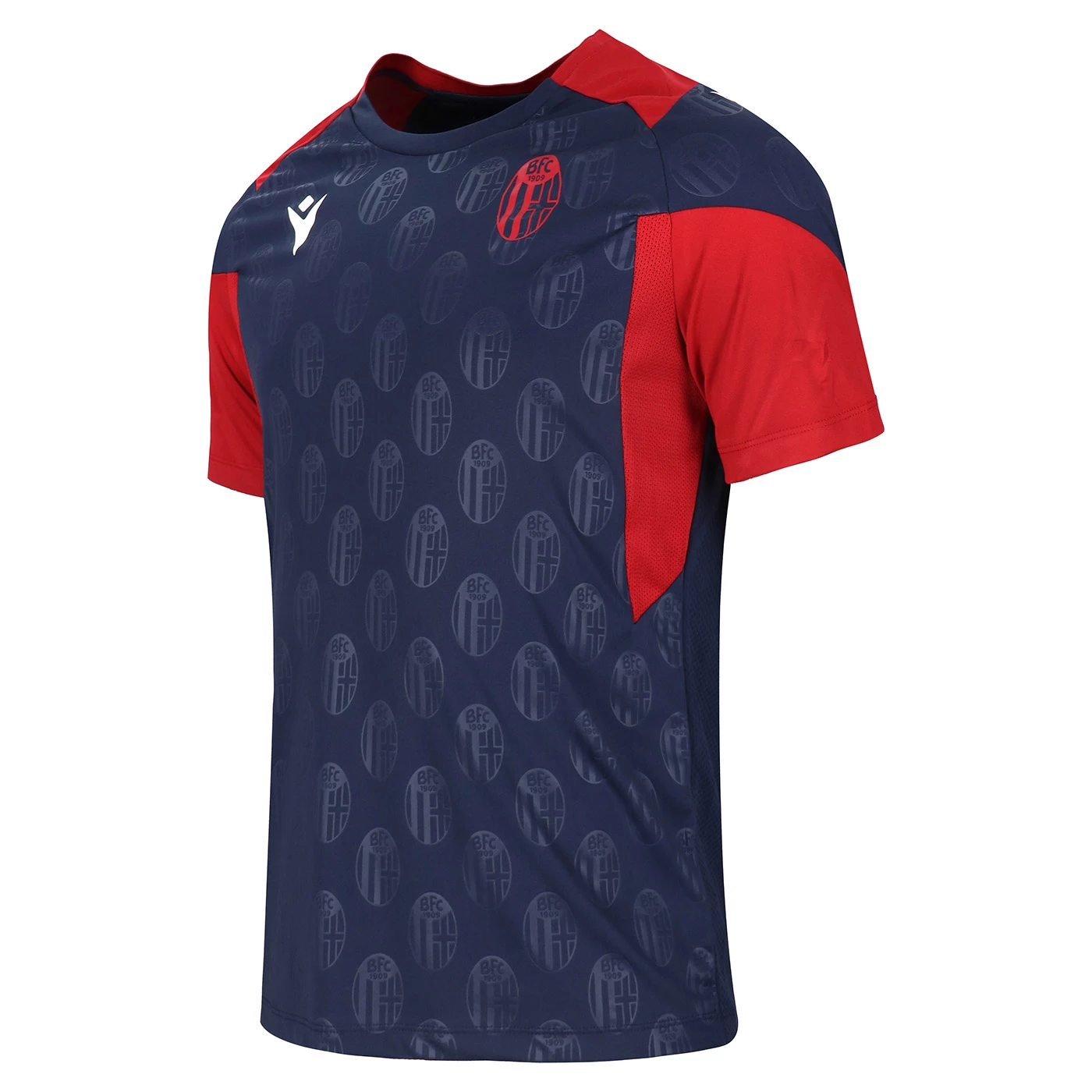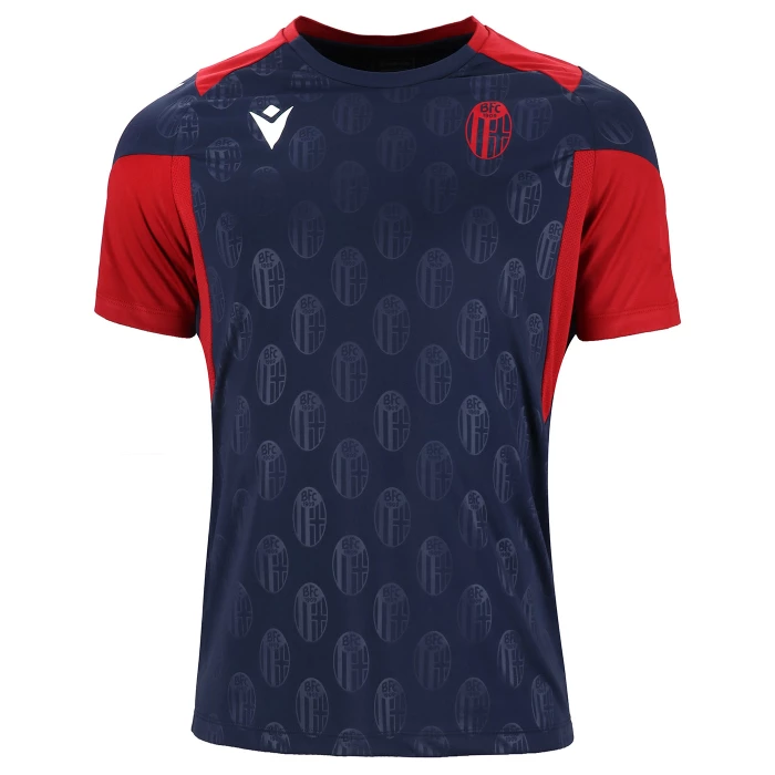 100% polyester. Training top with short sleeve and crew neckline. Bologna fc and Macron logos.
